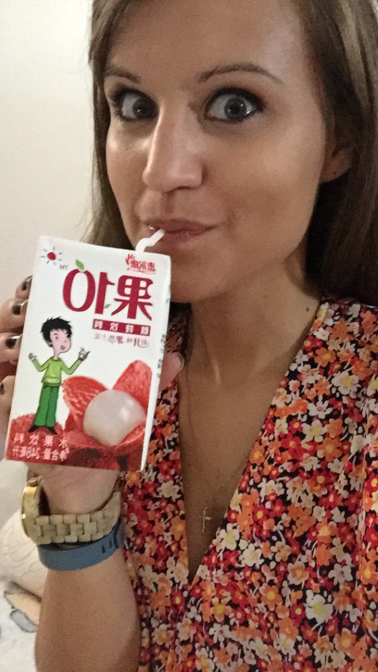 Lychee fruit juice is my favorite! They don’t have it in the USA and I had no idea they would have it here! Yay!