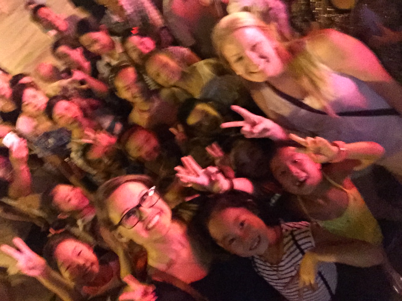 The little girls swarming my new friend (and fellow ESL teacher), Stephanie and I during a break from their dance class in the square.
