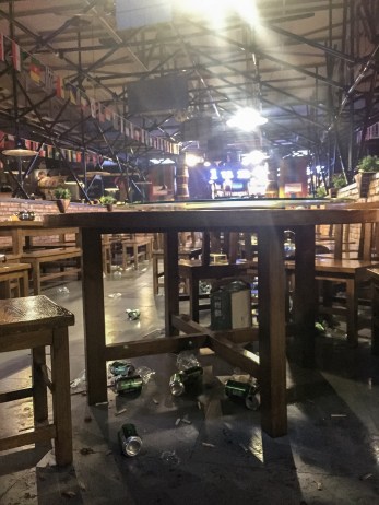 I wanted to post this picture to show the cultural differences. In China, even at nice restaurants people will throw their trash and drink cans on the floor even though there is a trash can provided at each table here.